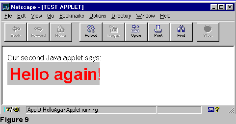 Save the above as HelloAgainApplet.html. Start your Java enabled browser and run